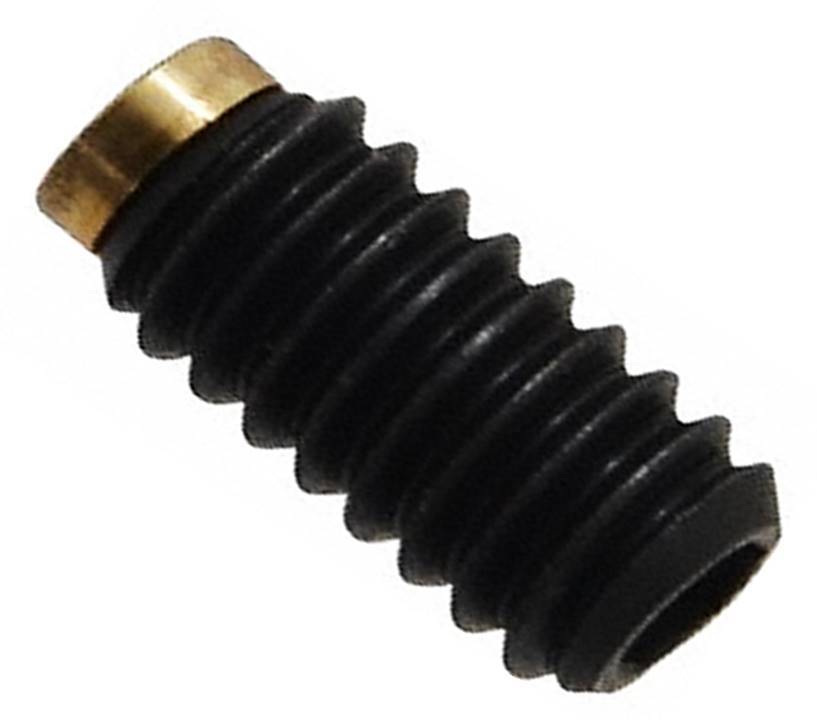 Half-dog tips in nylon or brass and with oval tips in silver solder also roller ball spring load tips. These tipped set screws have graduated hardness and hold components in place without damage to the shaft or component.