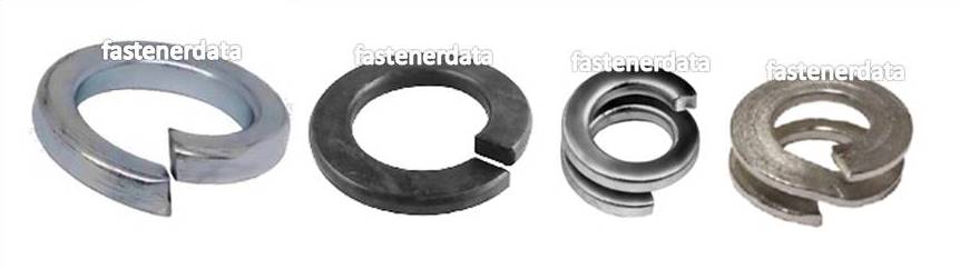 Locking washers: Spring Coiled Split Lock washer Contact washer Wedge Locking washer Serrated Safety washer