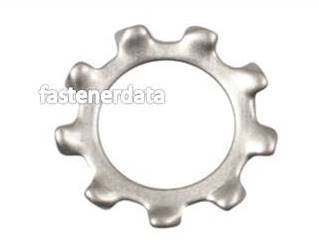 Tooth locking washers with teeth that are twisted to grip and extend radially outwards (external) to bite into the bearing surface. This type of washer is especially effective as a lock washer when used with a soft substrate, such as aluminium or plastic, and resist rotation more than a plain washer on hard surfaces. The external style has the serrations around the outer edge, which provides better holding power, because of the greater circumference area.