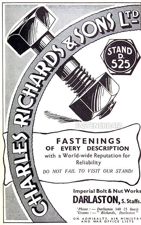 The home market was not forgotten. In the 1950s the company had agencies in every part of the country, and Charles Richards & Sons became one of the largest private bolt and nut makers in the world. The company became one of the largest employers in the area.
