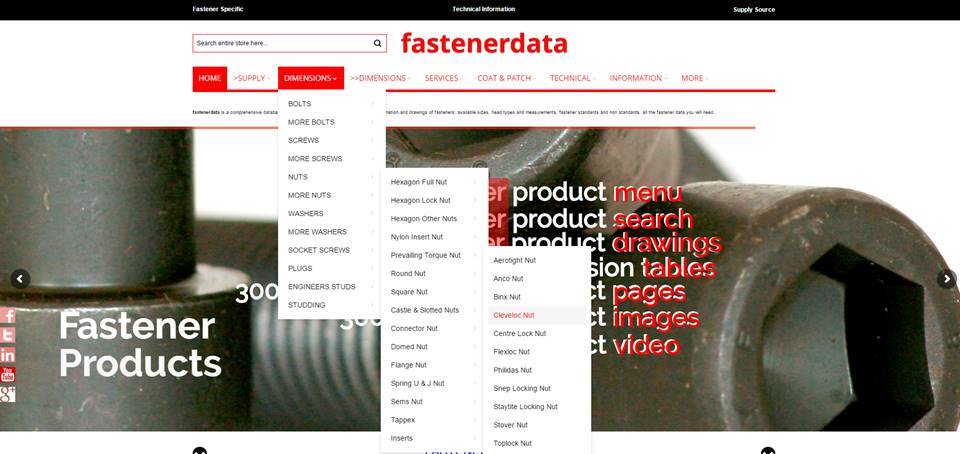 The fastenerdata website is populated with fastener distributors, fastener manufacturers and fastener services, advertising their abilities against specific products or supply categories.