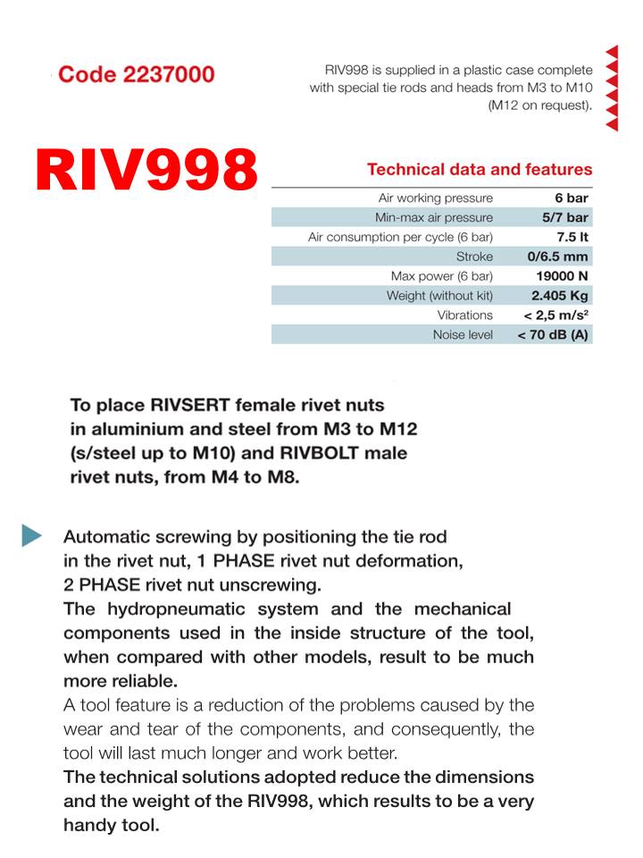 RIV998 Rivet Nut Hydropneumatic Tool rivit 998 riv