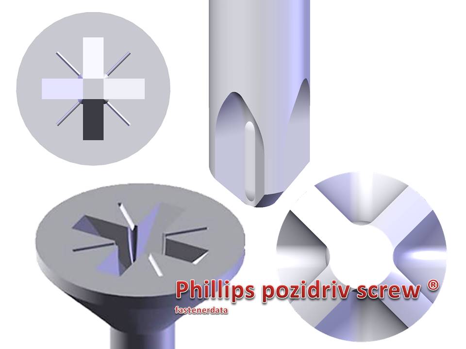 The Pozidriv® was invented to further improve the torque and cam-out of the Phillips' head. To do this, there was a second cross added to the first cross. This not only helped when distinguishing between the two head types but it also further improved the contact of the driver to the screw. A different screwdriver is needed for use with each screw. The new screwdriver for use with a pozidriv screw has a blunt point rather than a sharp point, and the angle of the blades are sharper by 45 degrees. The driver doesn’t have rounded corners as the Phillips driver has. The design was patented in the 1960’s by the American Screw Company and the Phillips Screw Company as a joint venture, and the name is thought have come from an abbreviation of “Positive Drive”.